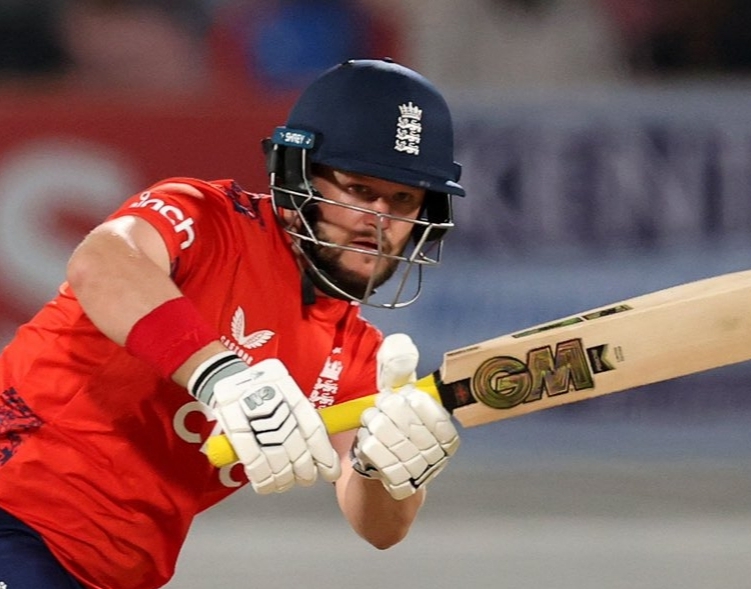 భారత్ ఇంగ్లాండ్ జట్ల మధ్య 5 టీ20ల సిరీస్ లో భాగంగా నేడు రాజ్ కోట్ వేదికగా జరిగిన మూడో టీ20లో ఇంగ్లాండ్ 26 పరుగుల తేడాతో విజయం సాధించి సిరీస్ లో గెలుపు ఖాతా తెరిచింది. భారత్ టాస్ గెలిచి బౌలింగ్ ఎంచుకుంది. దీంతో మొదట బ్యాటింగ్ చేసిన ఇంగ్లాండ్ నిర్ణీత 20 ఓవర్లలో 9 వికెట్లు కోల్పోయి 171 పరుగులు చేసింది. డకెట్ 51 (28; 7×4, 2×6) హాఫ్ సెంచరీతో రాణించాడు. లివింగ్ స్టోన్ 43 (24; 1×4, 5×6), బట్లర్ 24 (22; 1×4, 1×6) పరుగులు చేశారు. భారత బౌలర్లలో వరుణ్ చక్రవర్తి 5 వికెట్లతో ఆకట్టుకున్నాడు. హార్థిక్ పాండ్య 2 వికెట్లు, రవి బిష్ణోయ్, అక్షర్ పటేల్ ఒక్కో వికెట్ తీశారు. ఇక లక్ష్య ఛేదనలో భారత్ 20 ఓవర్లలో 9 వికెట్లు కోల్పోయి 145 పరుగులు మాత్రమే చేయగలిగింది. హార్థిక్ పాండ్య 40 (35; 1×4, 2×6) పోరాడాడు. అభిషేక్ శర్మ (24) ఉన్నంత వరకు ధాటిగా ఆడాడు. మిగిలిన బ్యాటర్లు పెద్దగా పరుగులు చేయలేకపోయారు. ఇంగ్లాండ్ బౌలర్లలో ఓవర్టన్ 3 వికెట్లు, జోఫ్రా ఆర్చర్ 2 వికెట్లు, కార్సే 2 వికెట్లు, అదిల్ రషీద్, మార్క్ వుడ్ ఒక్కో వికెట్ చొప్పున పడగొట్టారు.